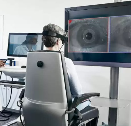 Nello studio medico del Dott. Porro a Brindisi il paziente indossa occhiali dotati di telecamera per monitorare i movimenti degli occhi, o nistagmo, durante la stimolazione del sistema vestibolare. Questo esame eseguito dall'otorino Porro nel suo ambulatorio di Brindisi permette di identificare la causa e la gravità del nistagmo, fornendo informazioni qualitative e quantitative sul sistema vestibolare.